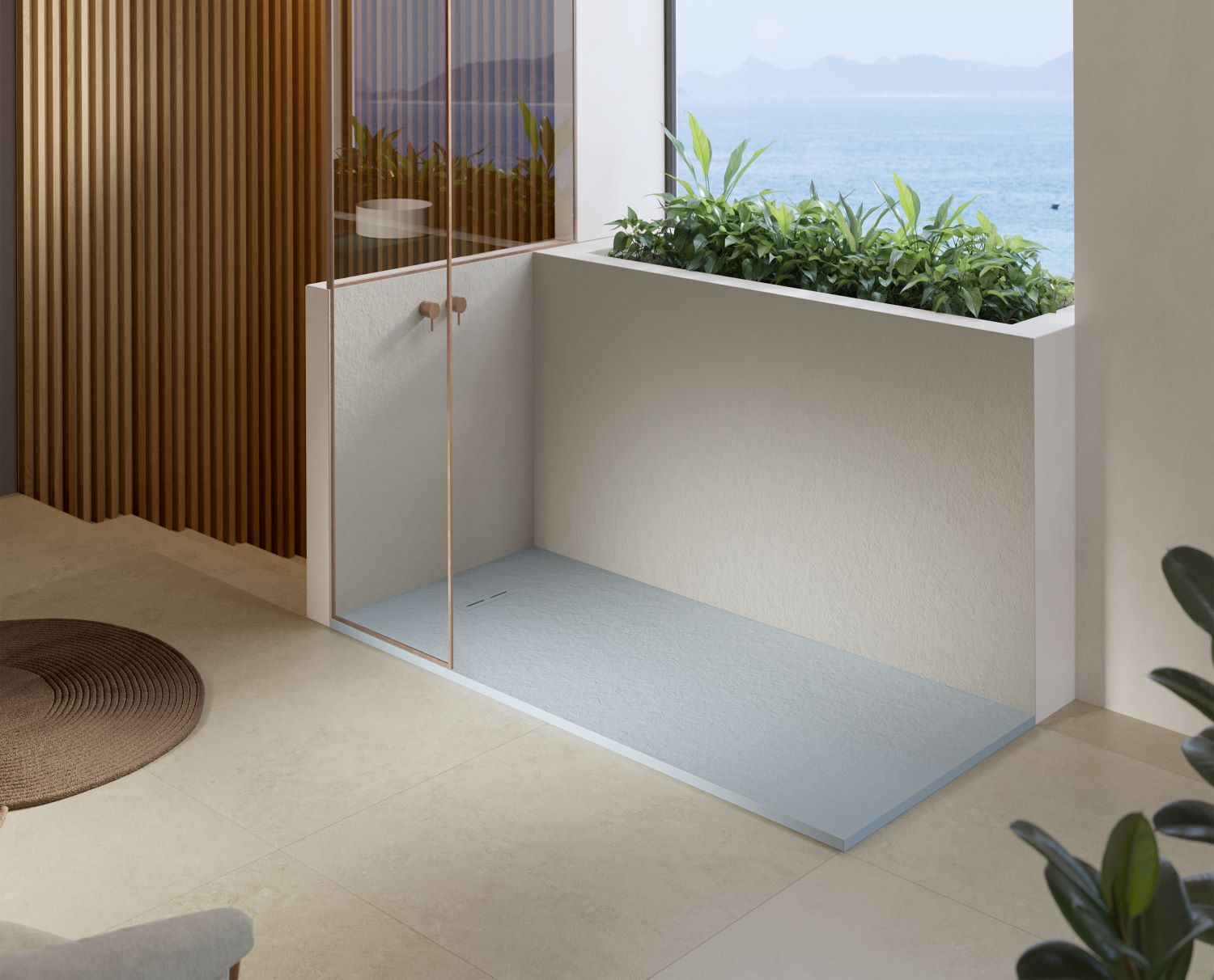 Alma Slate is distinguished by its durability, exceptional quality, and customisation options, including a wide range of colours. Its stone effect and slate texture add a touch of elegance to any bathroom, while its minimalist grille, designed in Akron, offers a seamless texture and colour match with the shower tray surface. Made from a high-quality polyurethane and mineral composite, it ensures efficient water drainage, helping to maintain cleanliness.
