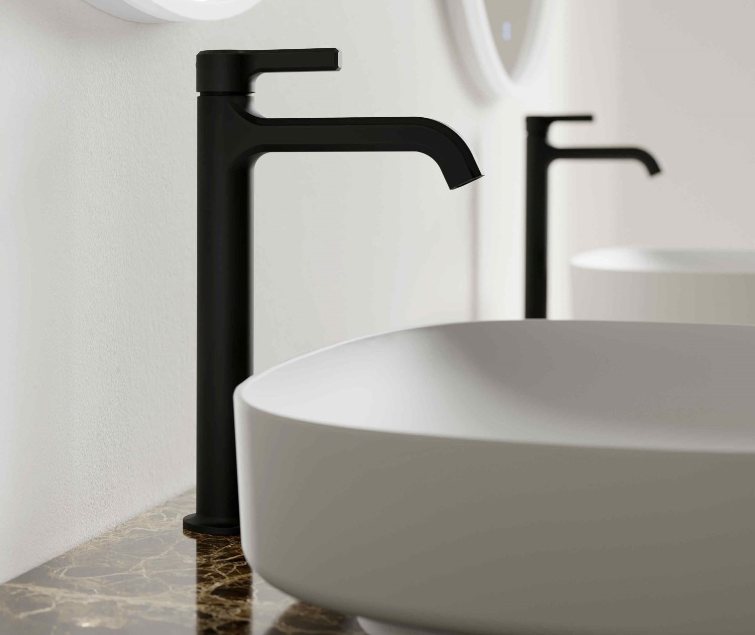 Aurelia (pictured top) is a timeless, ever-contemporary option, perfect for a variety of bathroom styles. The concept seeks to enhance light and reflections thanks to the edges on the cylindrical surfaces, allowing the shape of the taps to strike a sophisticated, elegant balance. Aurelia is a complete range of mixer taps crafted in brass and available in the finishes indicated in the catalogue. This variety of colour options makes for a versatile collection that slots seamlessly into any bathroom.