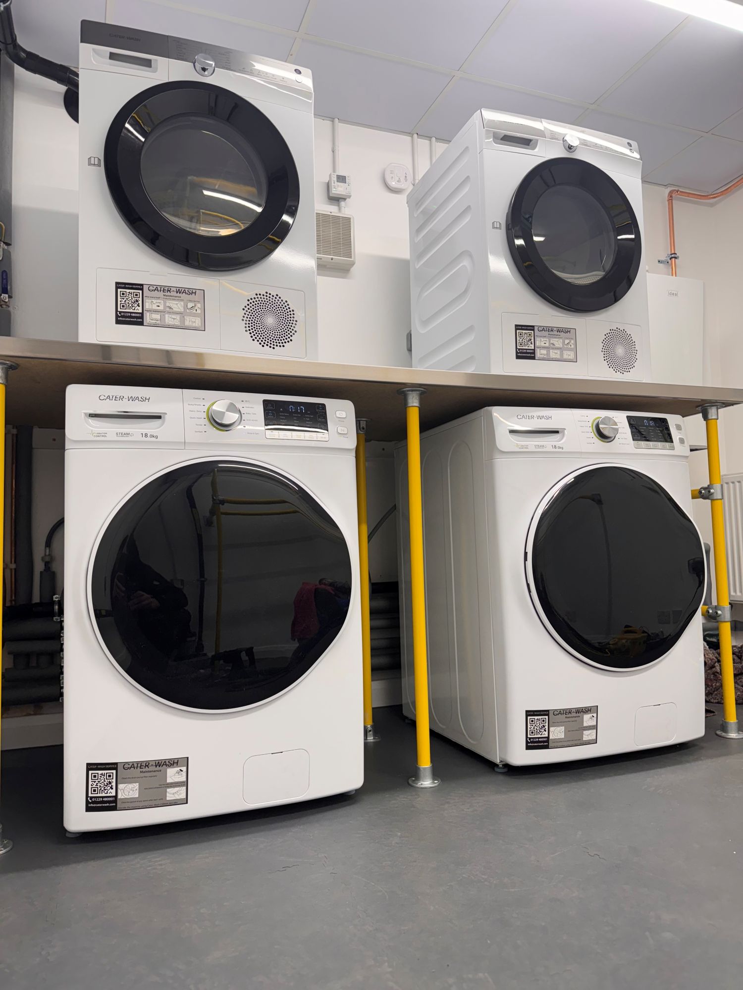 To handle the hot grey water produced by these appliances, Technical Manager Jay Scott specified Sanicom 1 units. With the ability to discharge water up to 90°C, Sanicom was the ideal solution. One unit services the restoration room’s sinks and dishwasher, while the other manages waste and condensate from laundry equipment, with long pipe runs to the soil stack.