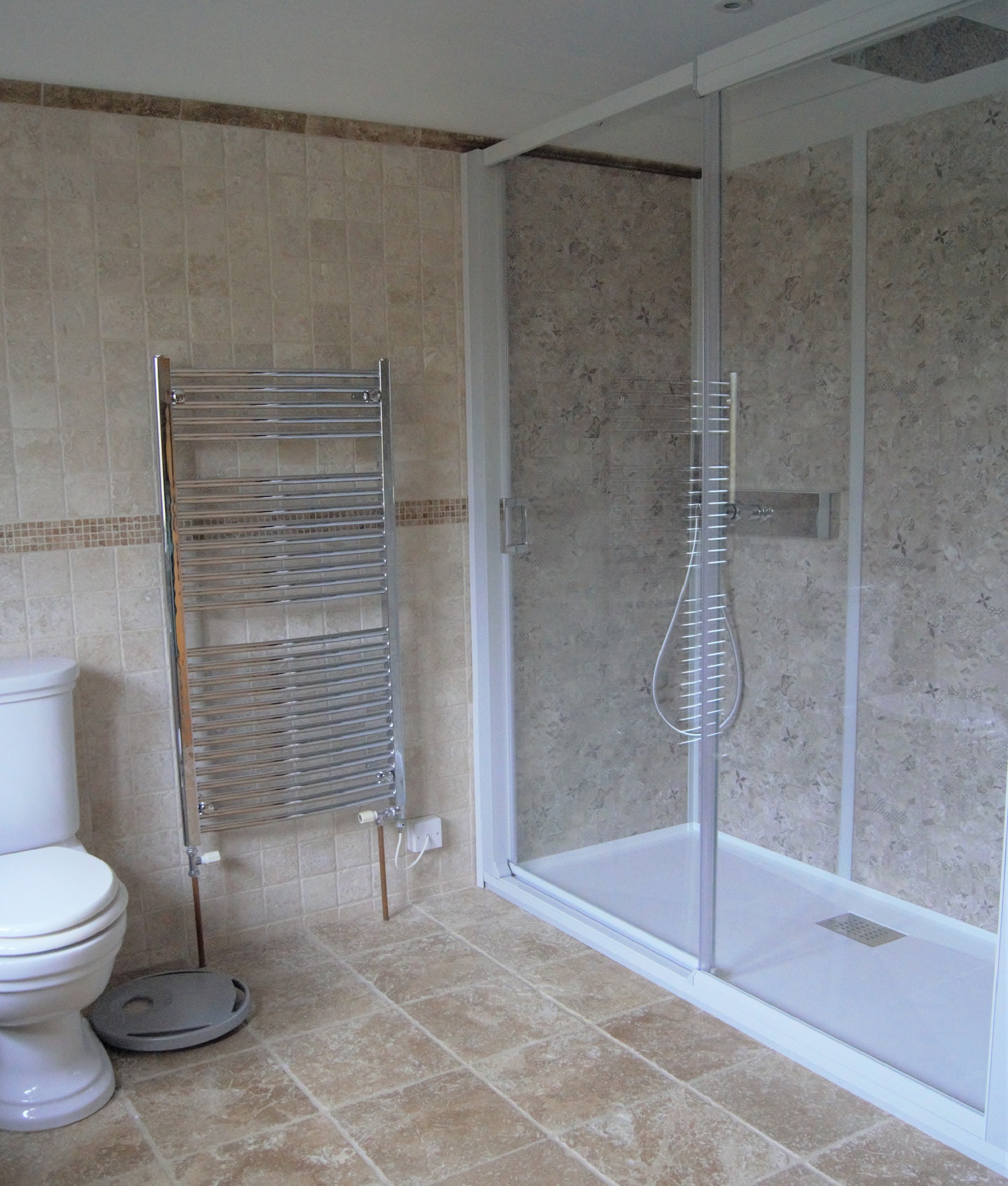 After colour samples were sent to the customer for approval, the team ordered a set of bespoke panels from the company’s manufacturing base in France and no holes were pre-drilled to enable a bespoke shower valve installation on site.