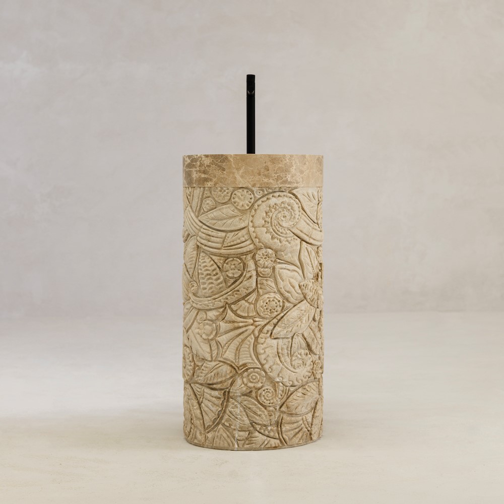 Ideal for hospitality projects, Mercy, Kreoo’s latest creation, marries natural stone and modern design. Crafted from a single block of marble, Mercy boasts a seamless surface adorned with intricate patterns that showcase the timeless beauty of natural stone. Designed by Christophe Pillet, this sculptural freestanding sink features a stunning array of motifs inspired by nature, from delicate leaves to elegant fan-shaped forms.