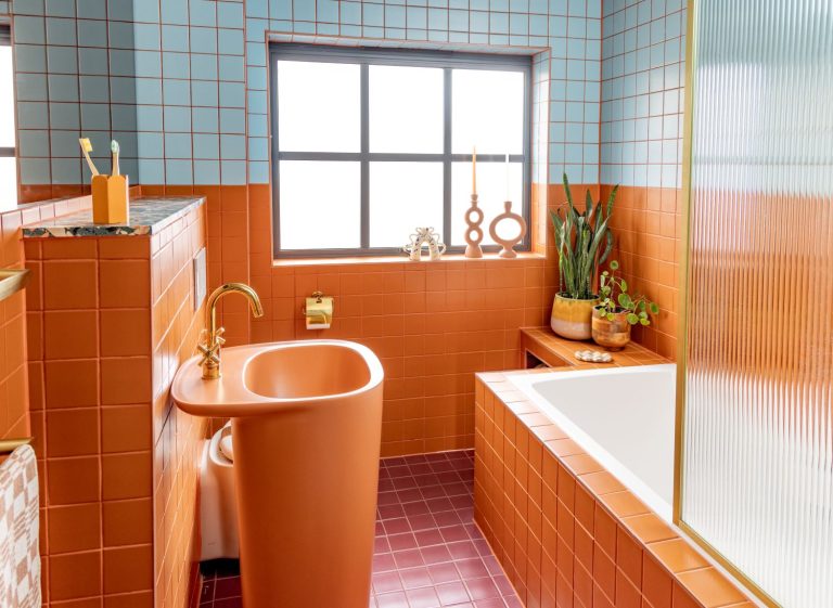 Interior designer and stylist Emma Jane Palin has revealed the bold design of her retro main and en suite bathrooms, featuring eye-catching terracotta and blue tiles from VitrA’s Pro Colour range, and the freestanding Plural washbasin by Terri Pecora. Emma collaborated with the VitrA London design and specification team, seeking advice on functionality and aesthetics of the bathrooms to bring her vision to life.