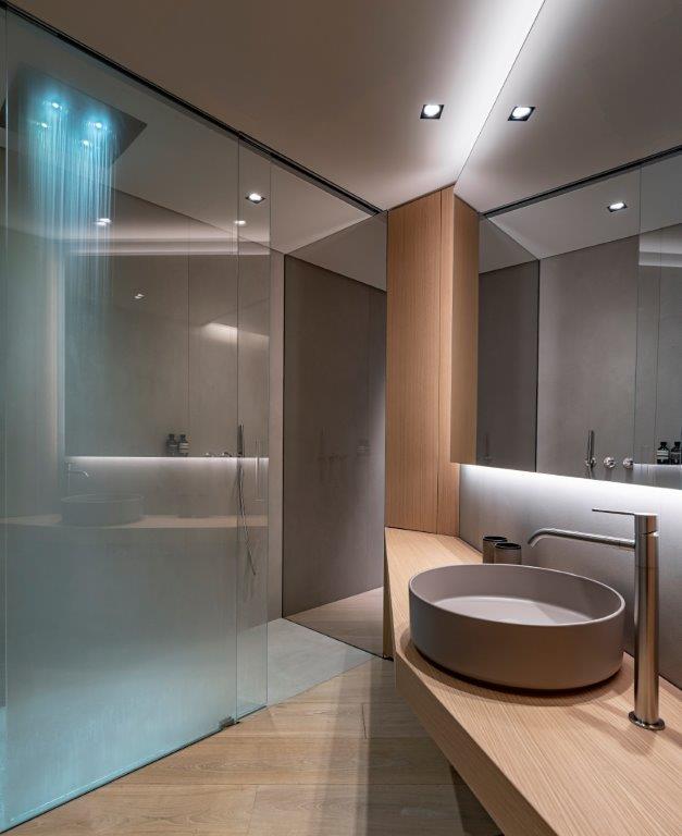 Every private bathroom within Domaine de L’Ansa is fitted with CEA taps from the INNOVO collection, finished in satin stainless steel. These fittings, known for their precision and elegant design, add a spa-like atmosphere to each space. The attention to detail in the bathrooms mirrors the overarching architectural theme—clean, modern lines that elevate the luxurious feel of the residence.
