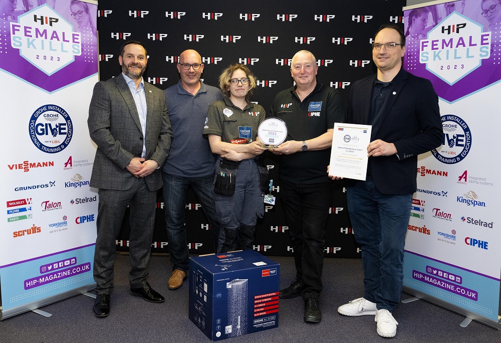 One building block in the brand’s efforts to counteract the shortage of skilled labor in the sanitary industry is the GIVE Program (Grohe Installer Vocational Training and Education). GIVE supports plumbing schools in creating a uniform approach, with modern equipment, training material and a written examination that sets new industry standards. In the UK, GIVE most recently was the headline sponsor to the debut Female Skills competition 2023 hosted by student installer magazine, HIP. The competition sought to encourage young female installers and to provide a platform for female students to showcase their skills.