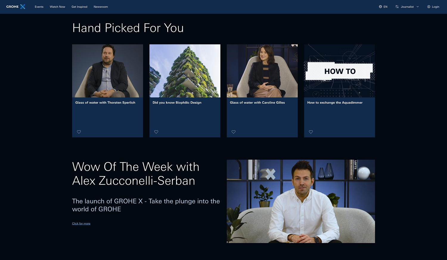 GROHE X offers a vast selection of how-to videos, inspirational articles and 360° virtual rooms that allow visitors to immerse themselves in the new product highlights and innovations. In addition, there are exciting video formats such as ‘A Glass of Water with…’, in which various GROHE experts offer behind-the-scenes glimpses of the global brand, or ‘Wow of the Week’, in which a particularly inspiring project or topic is presented each week. 2 While visitors to the brand hub can explore the world of GROHE on their own, GROHE X also opens up new ways of interaction. Business partners can use the platform to schedule appointments with their sales contact and thus exchange information directly about upcoming innovations. The visionary idea of driving customer engagement via the hub has so far resulted in more than 4,000 customer meetings.