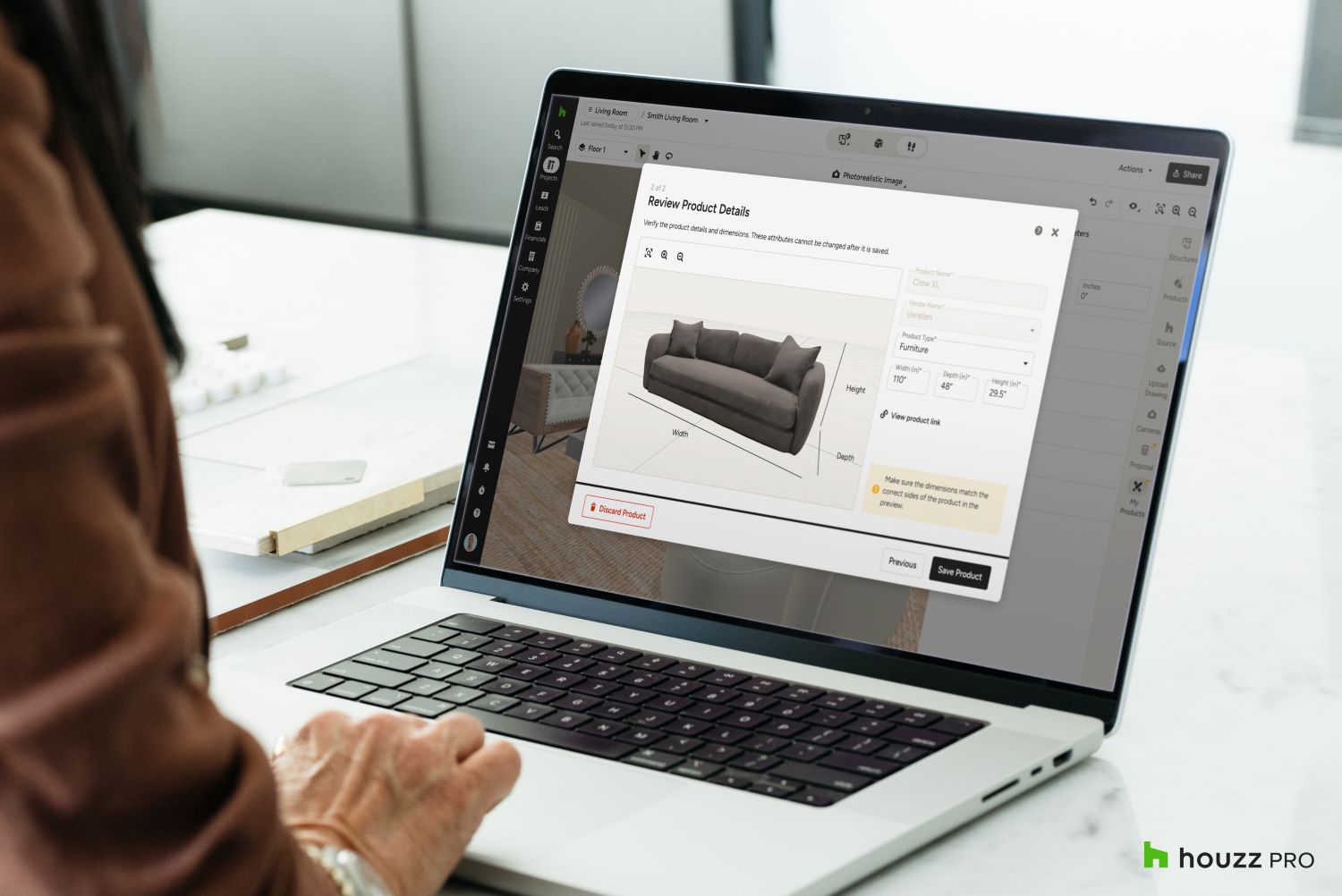 - 3D Floor Plans: Pros can use the power of AI to instantly turn 2D floor plans into editable 3D Floor Plans, saving time on manual work. Houzz Pro’s 3D AI tools also empower pros to turn product photos into 3D models they can use in their Houzz Pro 3D Floor Plans. To turn photos of furniture, decor and other products into a 3D model, pros can pull from their existing library on Houzz Pro or use the Houzz Pro Clipper to add a product from a vendor, website or their computer.