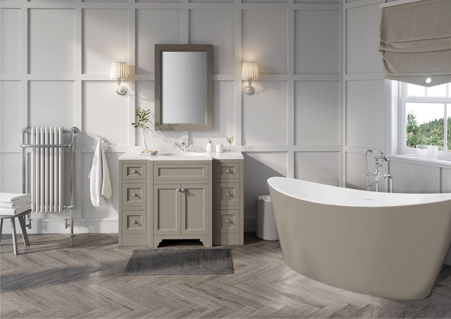 This range includes stylish products that reflect the unique atmosphere of a thriving Yorkshire spa town. The collection features handmade pieces crafted using traditional joinery techniques. It combines elegant design with high-quality manufacturing to create a classic luxury bathroom that will always stay in style.