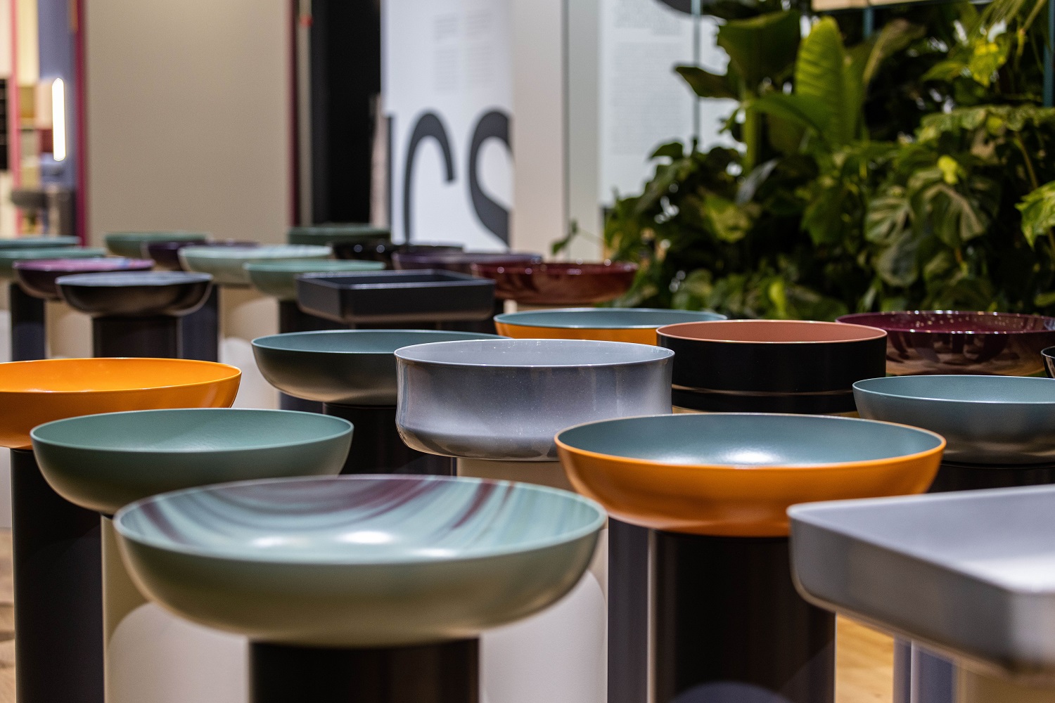 Visitors to the trade fair voted live on site or online by means of social media for their favourites and chose from twenty different designer washbasins with glamorous names such as Emerald Wave, Colour Twist or Paint Poetry.