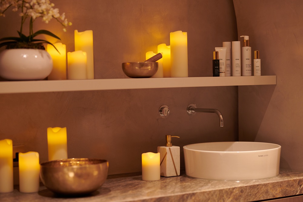 The hotel’s theme of calm and serenity is continued with the guest wellbeing amenities on offer, incorporating fitness, nutrition, holistic treatments and mindfulness. Guests can relax in the stunning 18.5m infinity pool, steam and sauna rooms and beautifully designed luxury treatment rooms featuring Kartell • LAUFEN washbasins.