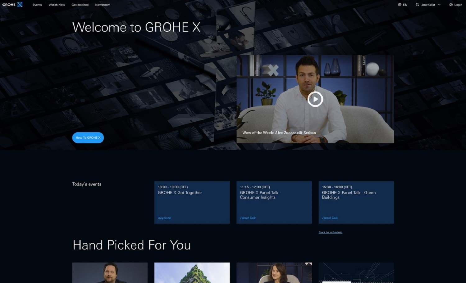 In addition, there are new video formats such as ‘A Glass of Water with…’, in which various GROHE experts offer behind-the-scenes glimpses of the global brand, or ‘Wow of the Week’, in which a particularly inspiring project or topic is presented each week. While visitors to the brand hub can explore the world of GROHE on their own, GROHE X also opens up new ways of interaction. Business partners can use the platform to make appointments with their sales representatives and thus exchange information directly about the innovations that have just been introduced.
