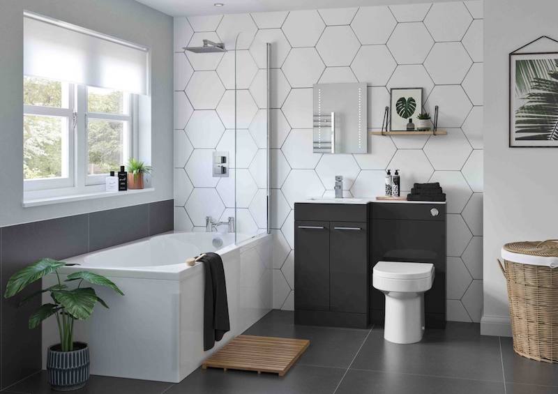 Available in three high gloss finishes, Anthracite Gloss, Grey Gloss and White Gloss, with a sleek chrome bar handle, the Venosa L-shape furniture pack has a small footprint of just 1100mm in width, with depths of 210mm and 395mm on each end, and a height of 860mm – ideal for small bathrooms, en-suites or cloakrooms.