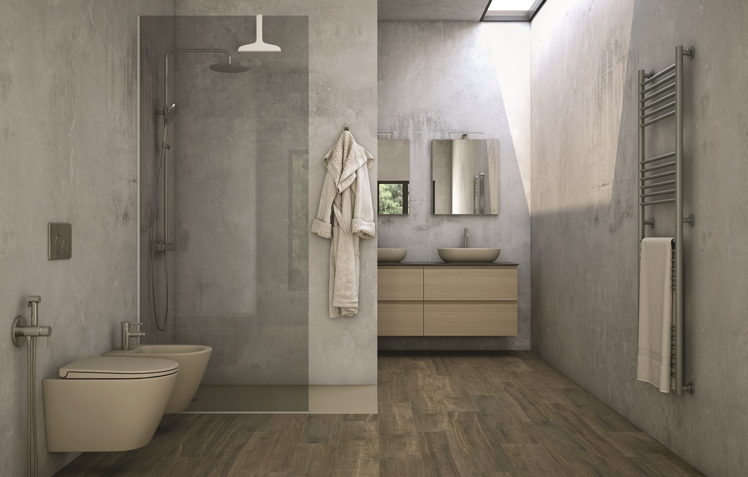 The perfectly colour matched WCs and bidet and beautiful brassware offer the perfect final touch for a total look bathroom where harmony accompanies those all-important moments of relaxation.