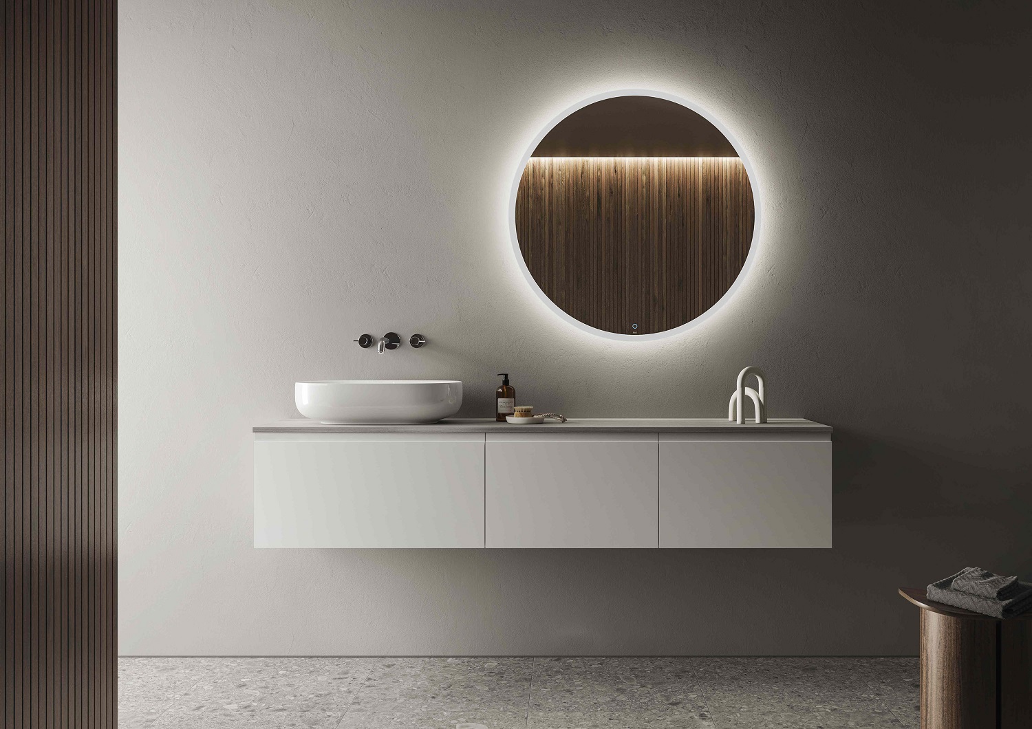 Available in three different TECHWOOD finishes and in the manufacturer’s innovative matt white RAKSOLID material, RAK-Plano is a one-piece vanity top, without joints that can be drilled and cut (if necessary) directly on site. This gives designers complete freedom in positioning the washbasin and mixer.