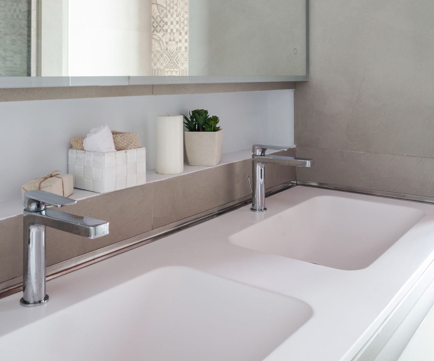 The interiors are enhanced by custom-made furniture and the use of floral wallpaper, which creates a delicate and harmonious atmosphere. As well as the taps, chosen for both bathroom environments: the Pois series by Ritmonio, with simple and elegant lines.