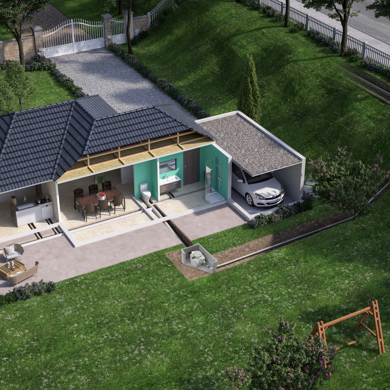 The flexible unit can equally be sited on the ground, in a cupboard, basement or a shed and is simple to install above or beneath the ground. The popularity of hybrid working over the last few years has paid witness to a boom in garden offices and these are often sited at a distance from the main property. These independent buildings are also widely used as gyms, salons, accommodation and hobby rooms. The Sanifos can facilitate the drainage for these buildings without the need for costly civils work, allowing the installation of bathrooms, kitchens, laundry rooms and any other application requiring a waste discharge.