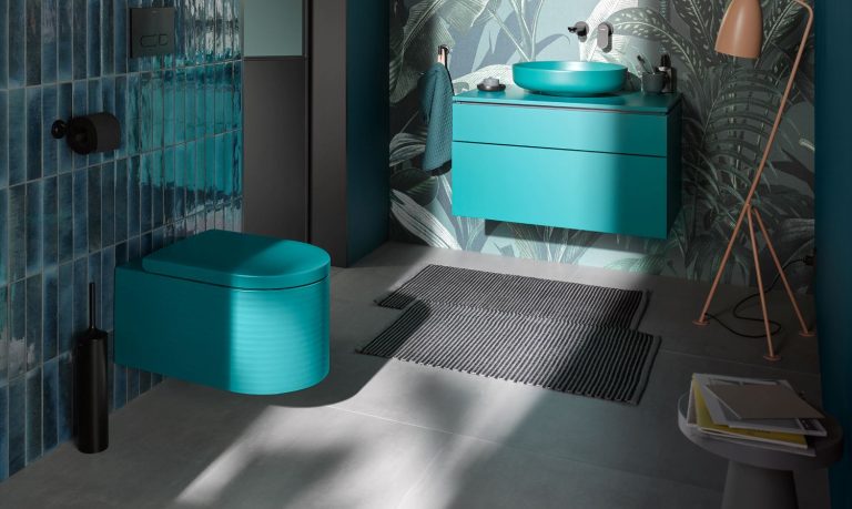 The Koy collection from the luxurious BAGNODESIGN brand (pictured above) is available in ten colourways ranging from daring Buttercup Yellow to the more dulcet tones of Matt Green and Thistle Blue. The basins are designed to team with Bagno Design’s wall-mounted WC (in four matching shades), and to complete the look, Koy brassware is also available in various finishes.