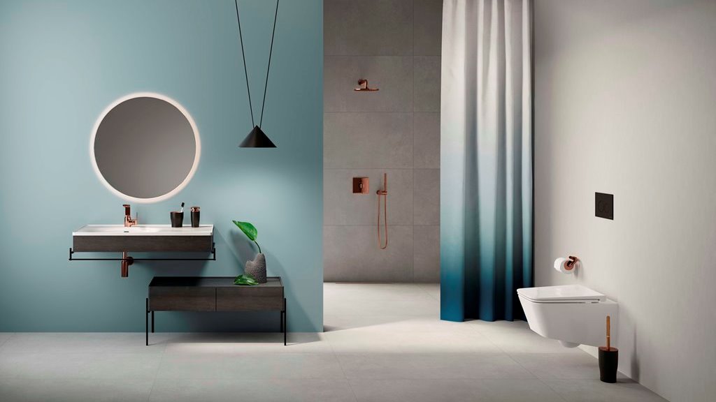The collection features a mirror with integrated LED lighting, a selection of storage and washbasin units, and a wall-hung WC. The contemporary nature of the delicate, angular design makes it ideal for both commercial and residential spaces.